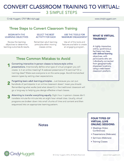 This handout will show you the 3 simple steps to take to convert classroom training to virtual.