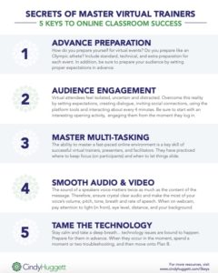 Your quick reference guide to the secrets of master virtual presenters and the 5 keys to online classroom success.
