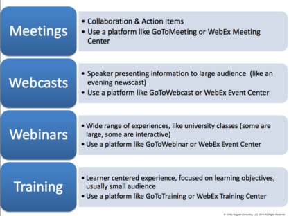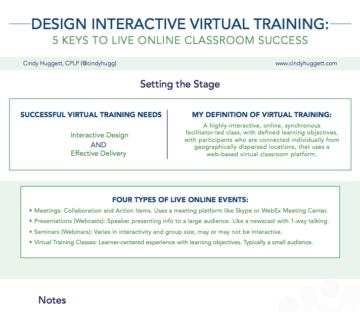 A big THANK YOU to everyone who attended my session “3 Steps to Convert Your Classroom to Virtual Training “. As promised, below are the handouts and resources I mentioned. You’ll also find more checklists and whitepapers on my Resources page. Enjoy!
