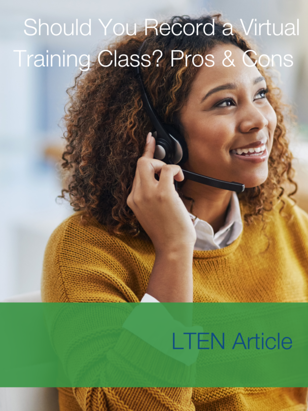 Most virtual platforms make it easy to record. But just because you can record a virtual training class, doesn’t mean you should. In this article, published in LTEN’s Focus on Training magazine June 2024 edition, you’ll discover the pros and cons to recording a virtual class. Click the link below to read the article.