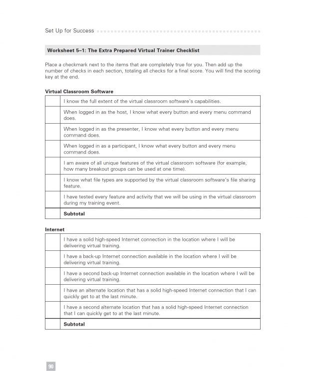 Featuring three must-do’s and five best practices for virtual training success. This checklist provides practical tips for virtual facilitators to design interactive classes, as well as how-to’s on preparing participants.